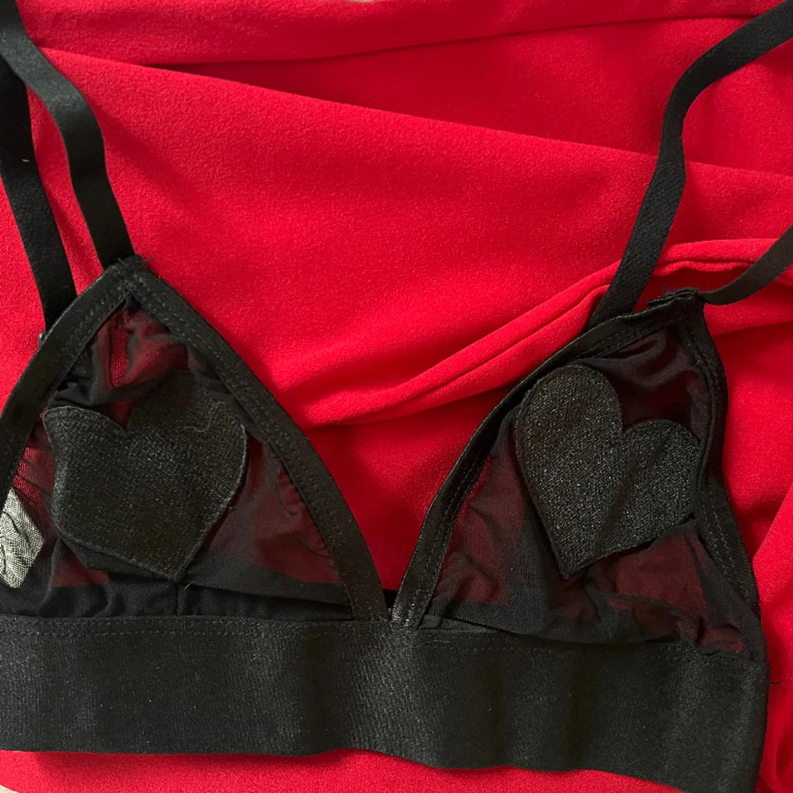 Svart top med hjärtan med justerbara band från BikBok. Aldrig använd, prislapp är kvar. Nypris 149 kr. Pris kan diskuteras. Köparen står för frakten.