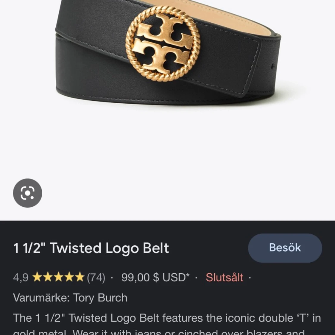 Tory burch bälte i modell som inte längre säljs, ny pris när den köptes 2000kr , eftersom man kan se att den har används, säljs den nu för mke billigare, pris kan diskuteras