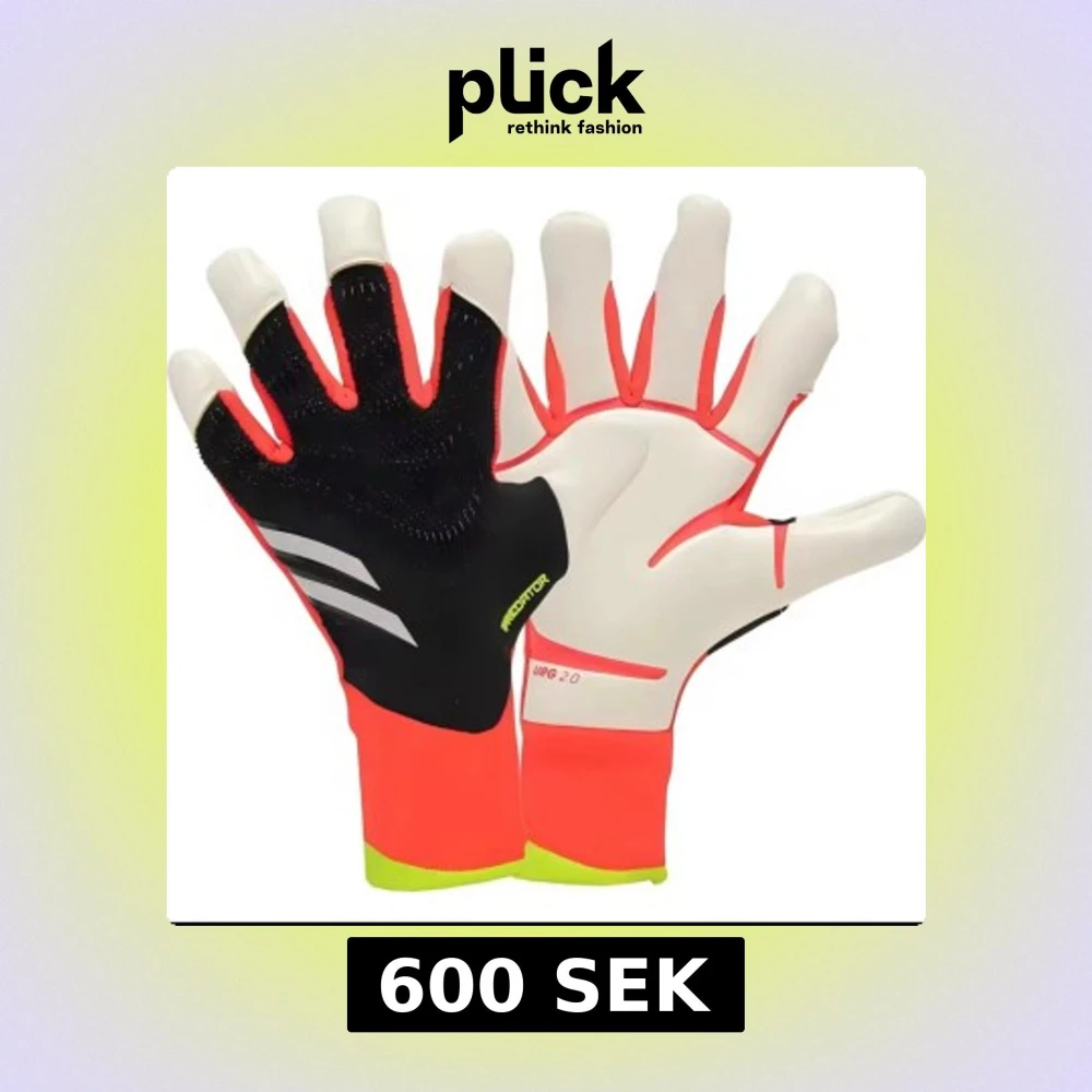 Snygga målvaktshandskar från Adidas Predator-serien i svart, vitt och neonrött med gula detaljer. Handskarna har en tight passform och greppvänlig insida, perfekta för fotbollsmatcher och träning. Kom privat för bilder, aldrig använda