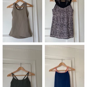 Säljer 4 linnen (DOM, lululemon, H&M, peonias), alla i strl S. Kan mötas upp i Stockholm och annars posta för 52 kr. Linne från drop of mindfulness i strl S - 100 kr Snyggt leopardlinne från lululemon med meshdetalj och inbyggd bh, använt fåtal gånger - 200 kr Mörkgrön topp med inbyggd bh från H&M, använt fåtal gånger - 80 kr Grön/grå topp med inbyggd topp från peonias, använt fåtal gånger - 150 kr (ALT ALLA FÖR 350KR)