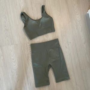 Sportbh + tights i gröngrå färg. Storlek M böda delar.