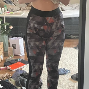 Träningstights med grå/rosa mönster. Minns inte vart jag köpt dom, väldigt stretchiga och sitter bra i midjan och längd på min som är ca165. Storlek S och sitter som en vanlig S men väldigt stretchiga. Köparen står för frakten