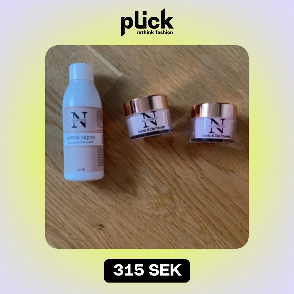 säljer mina akryl produkter pga att vätskan luktade starkare än tänkt, på bild 3 ser ni hur mycket av vätskan jag har använt. Beiga pudret är använt till en nagel och det rosa är bara öppnat. Nypris på allt: 477, mitt pris: 315. Torkar utan uv lampa