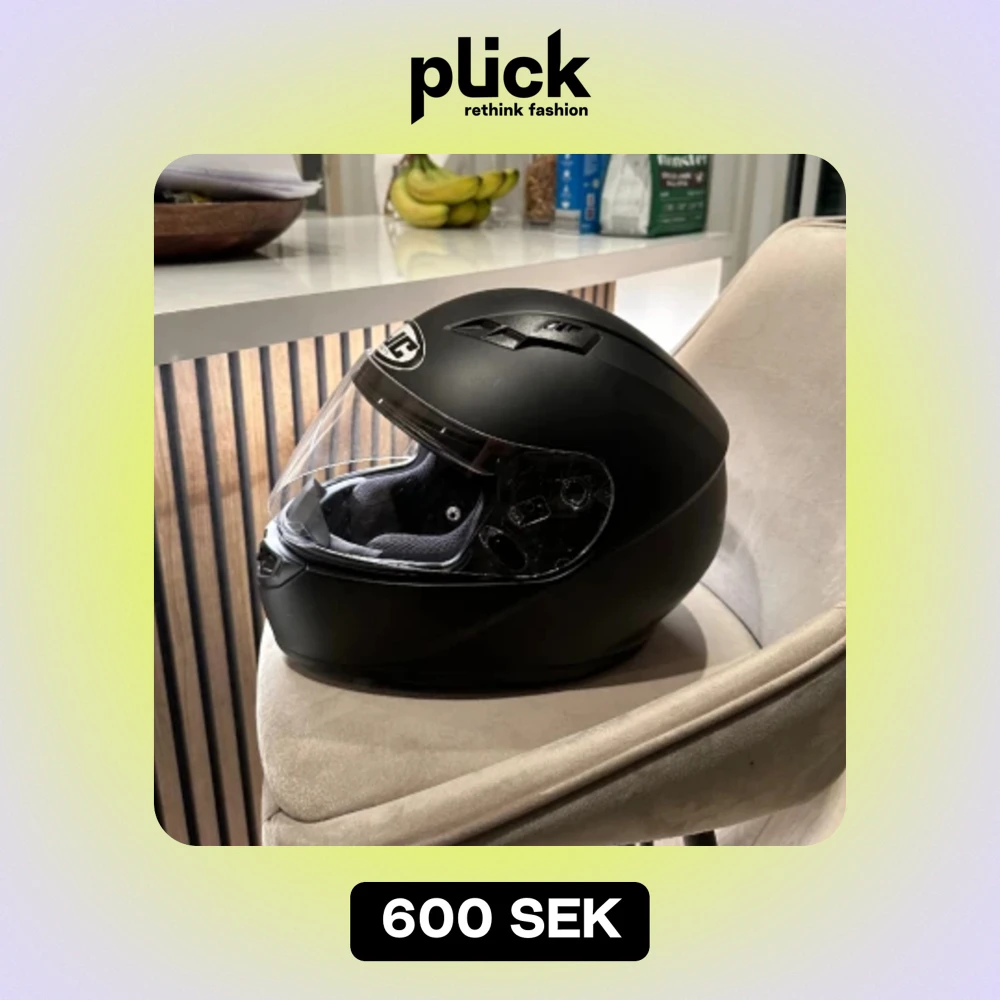 HJC hjälm storlek S (55-56cm). Använd som passagerar hjälm förra sommaren men säljer då ja behöver en större.Inga fel men som du kan se på sista bilden har en söm spruckit (inget som påverkar den kan bara klippas av) Pris 600kr möts i Sollentuna