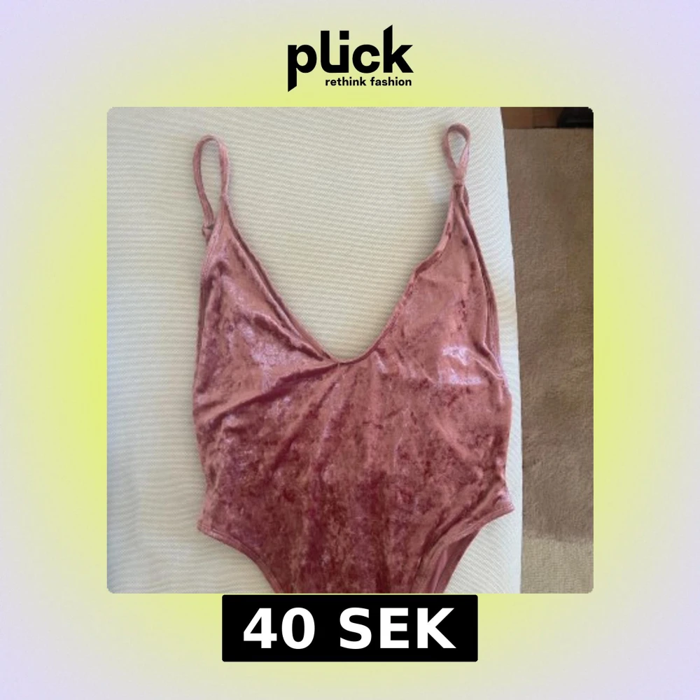 Supersnygg rosa sammetsbikini med djup v-ringning och smala axelband. Materialet är glansigt och mjukt, vilket ger en lyxig känsla. Perfekt för dig som vill sticka ut på stranden i sommar!