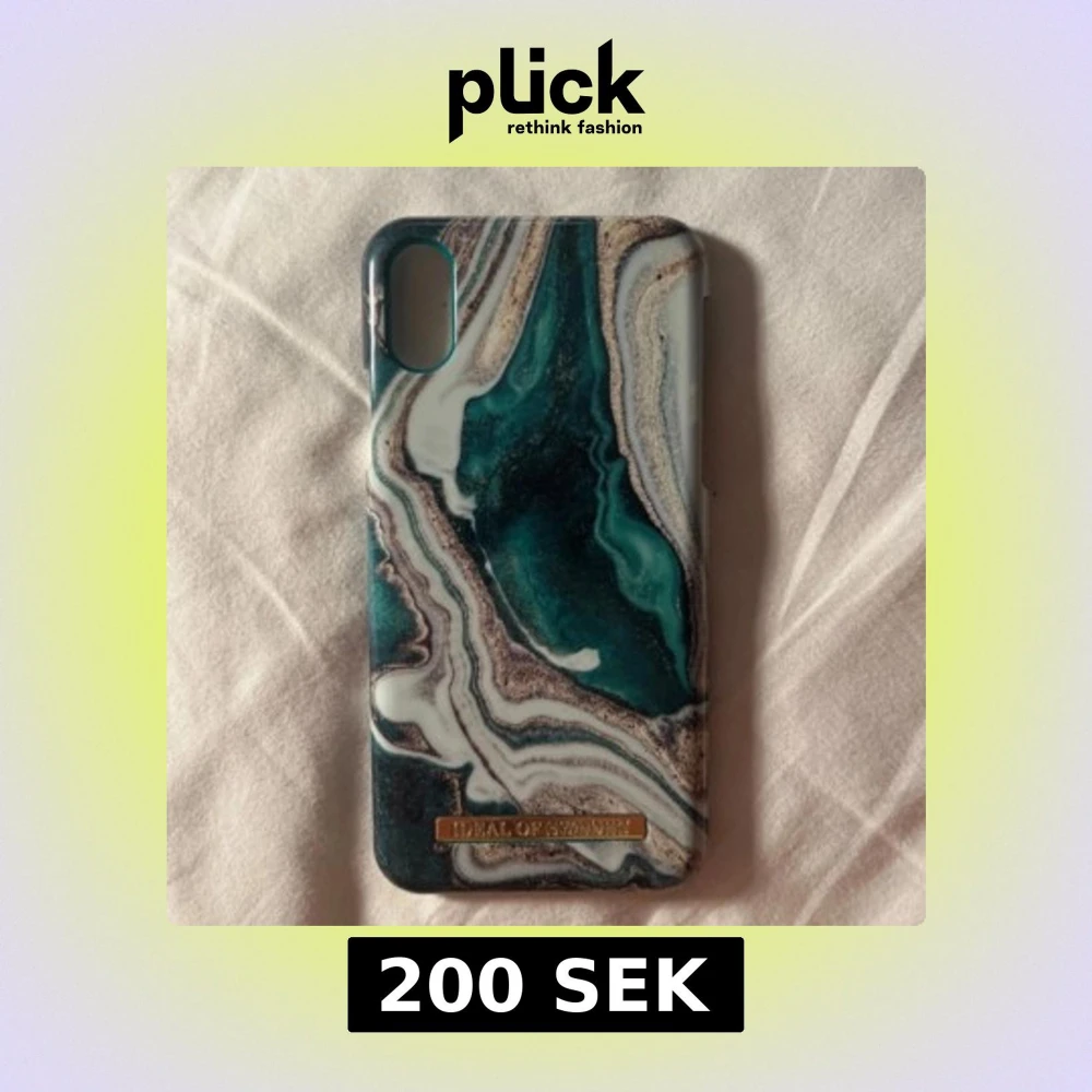 Säljer två snygga mobilskal från iDeal of Sweden. Ena har ett marmormönster i grönt, det andra med blommigt motiv med blå orkidéer på vit bakgrund. Båda har en stilren metallogo längst ner.