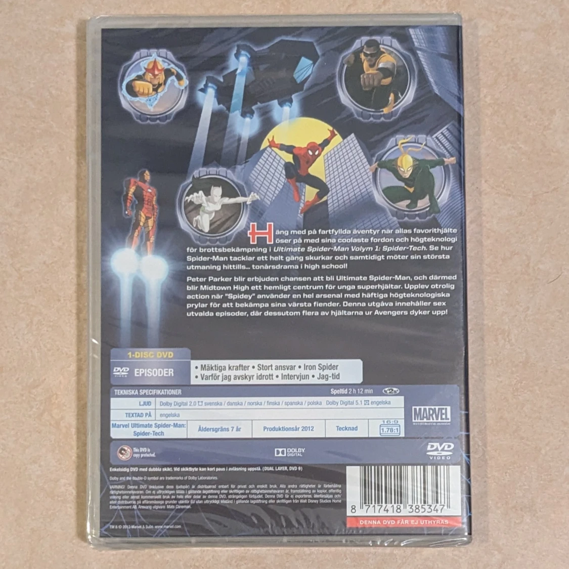 Följ Spider-Man på fartfyllda äventyr med coola fordon och högteknologiska prylar! Perfekt för dig som gillar action, superhjältar och episka strider mot skurkar. Innehåller flera avsnitt där även Avengers dyker upp. Svenskt tal och tecknad stil.