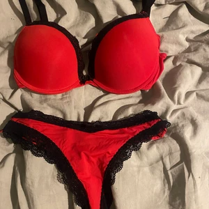 Storlek S i under delen passar för alla med xs/s/m, helt oanvända. Överdelen är i storlek 75D Passar mig med C i vanliga fall. Ingen av dom är använda köpte dom endast pga kom med ett annat set som jag då ville ha. Från newyorker. Säljs för 200kr+frakt.