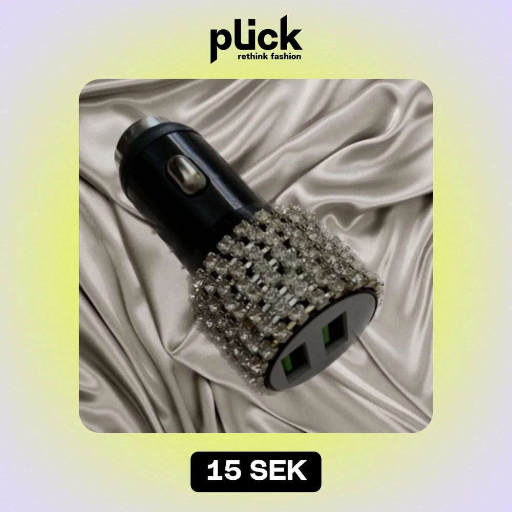 USB uttag så man kan ladda i bilen med strass! Superfint och söt. Strassen e lös längst ner åt båda sidor men går att limma.