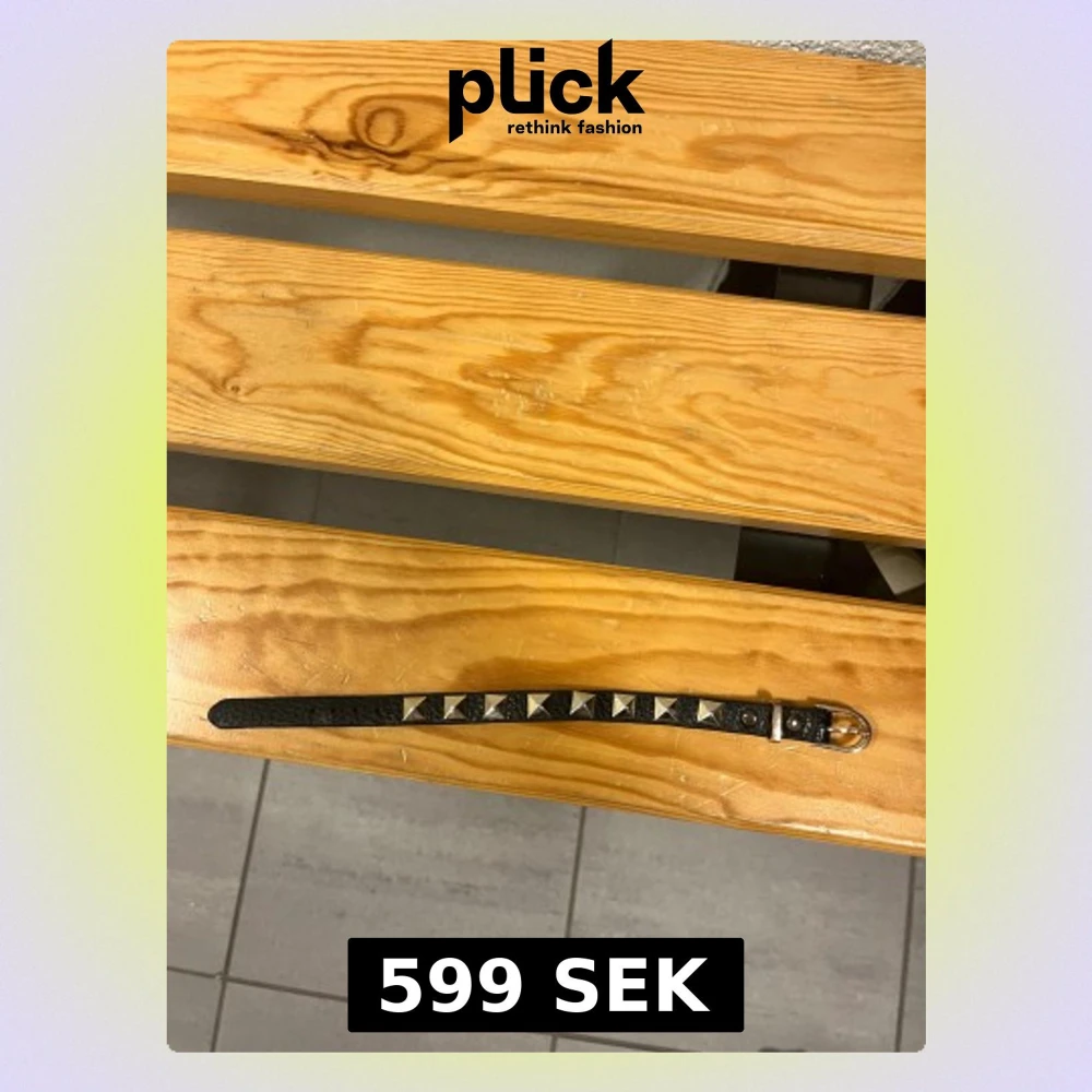 Säljer ett svart armband guldiga pyramidformade nitar längs hela bandet. Bältet har en klassisk metallspänne och är gjort i skinnimitation med en rå och edgy vibe. Perfekt för att ge din outfit lite extra attityd. Det kostar runt 2000 nytt mitt pris 599