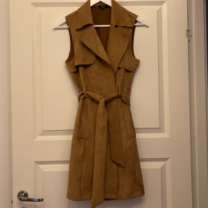 Fin knälång väst i mocka tyg. Ljusbrun i färgen