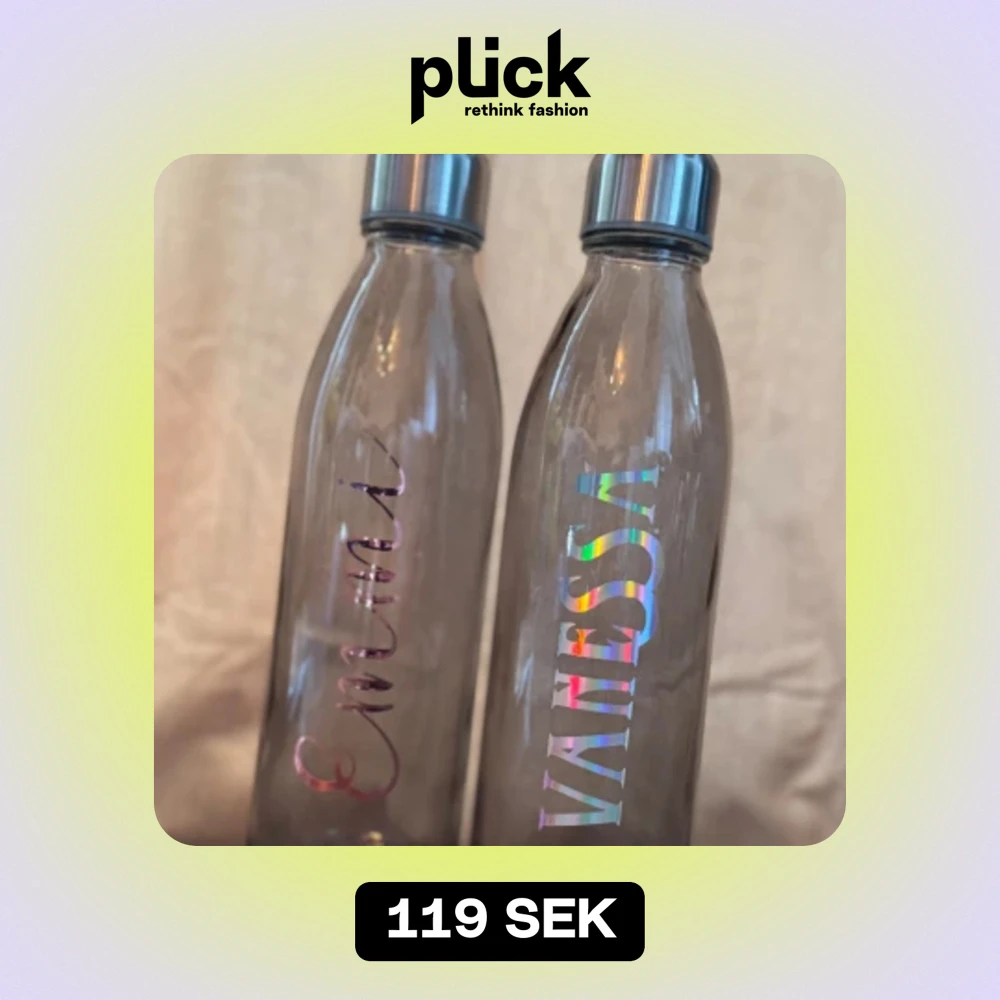 Vattenflaska i glas där du kan välja rosa eller holografis vinyl och det namn du vill ha på flaskan. Ifall det är någon speciell font namnet ska vara skrivet i så är det bara att skriva med det också:) #handmade #smallbusiness #cricut #waterbottle