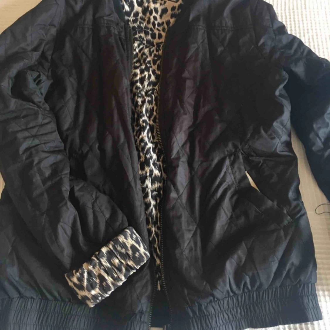 Bomberjacka. Det går att vända jackan in & ut, beroende på om du vill ha den leopardmönstrad eller helt svart. Det finns ett litet hål längst ner på jackan. Köparen står för frakten. 100 kr är utgångspriset om det inte blir budgivning