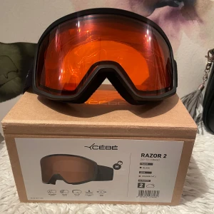 Snygga Cébé Razor 2 skidglasögon med orange lins och svart ram. Är aldrig använda, endast testade så hela orginatförpackningen med tillbehör finns kvar! Den har justerbart band. Nyskick