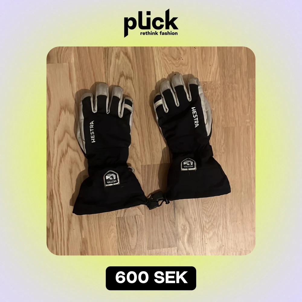 Säljer ett par svarta Hestra handskar bra skick! De har en snygg design med vita detaljer och är perfekta för vintersport. Handskarna har justerbara remmar vid handleden för bättre passform och är gjorda i slitstarkt material. Perfekta för kalla dagar! ❄️