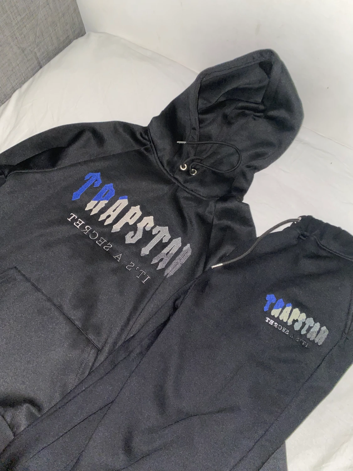 Svart och mörkblå Trapstar tracksuit Aldrig använt Eftersom den var för liten Storlek M Pris kan diskuteras Perfekt för vintern eftersom den är jätte bekväm