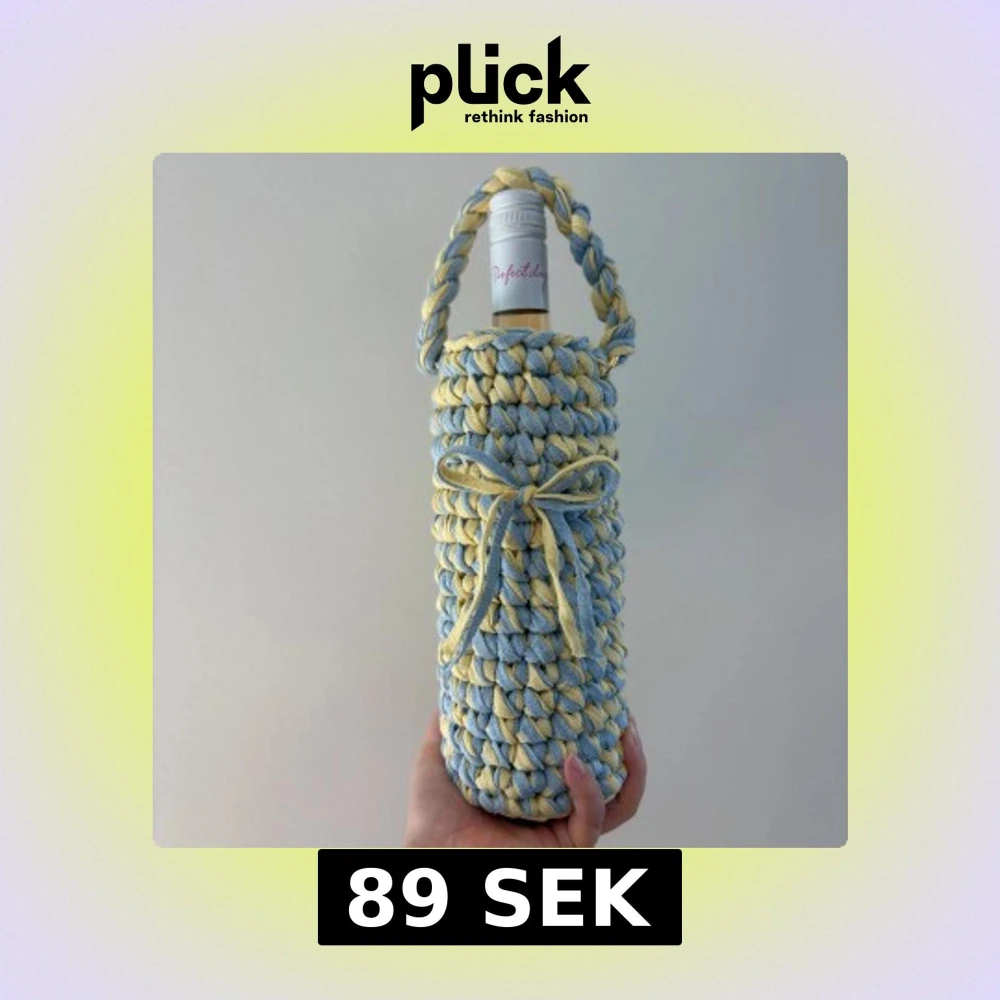 Ge bort en flaska med stil – eller behåll den själv! Säg hej till min handgjorda flaskhållare i mjukt, återvunnet garn i somriga färger. Passar standard vinflaska (eller annan dryck). 🎁 Perfekt som gå-bort-present till midsommarfirandet! 🚚 Gratis utkörning inom Malmö fram till 19/6. Leverans samma dag eller dagen efter. Gör midsommar lite mer finare och mer personlig för endast 99:-🌻 Begränsat antal – varje hållare är unik