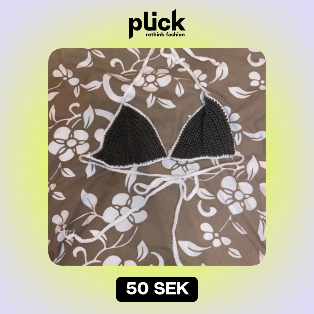 Jätte fin bekväm bikini topp som jag virkat själv. Jag har bara provat på men inte andvänt innan. Jag har storlek 65c i bh storlek och denna var lite för liten för mig så jag tror den är b cupa. Ja blev jätte nöjd o hade behållt om den passade mig😇👍🏼