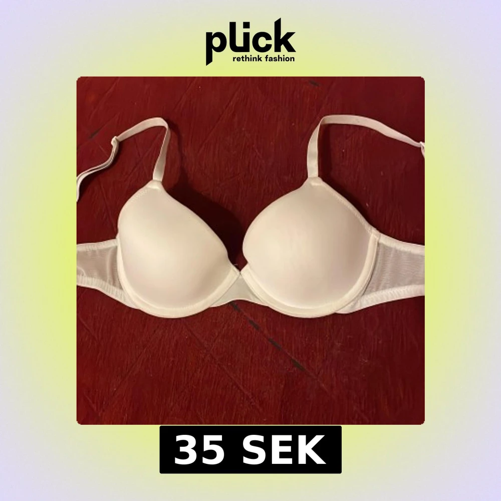 Säljer en stilren vit bh med mjukt tyg och justerbara axelband. Perfekt för en bekväm och smidig passform, strolek 75A från HM.