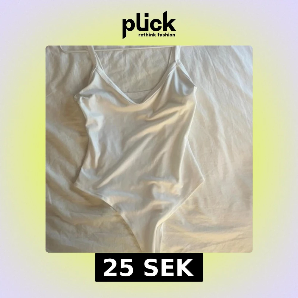 Vit, stilren body från SHEIN med smala axelband och v-ringad hals. Tillverkad i mjuk och stretchig polyesterblandning som sitter snyggt på kroppen.