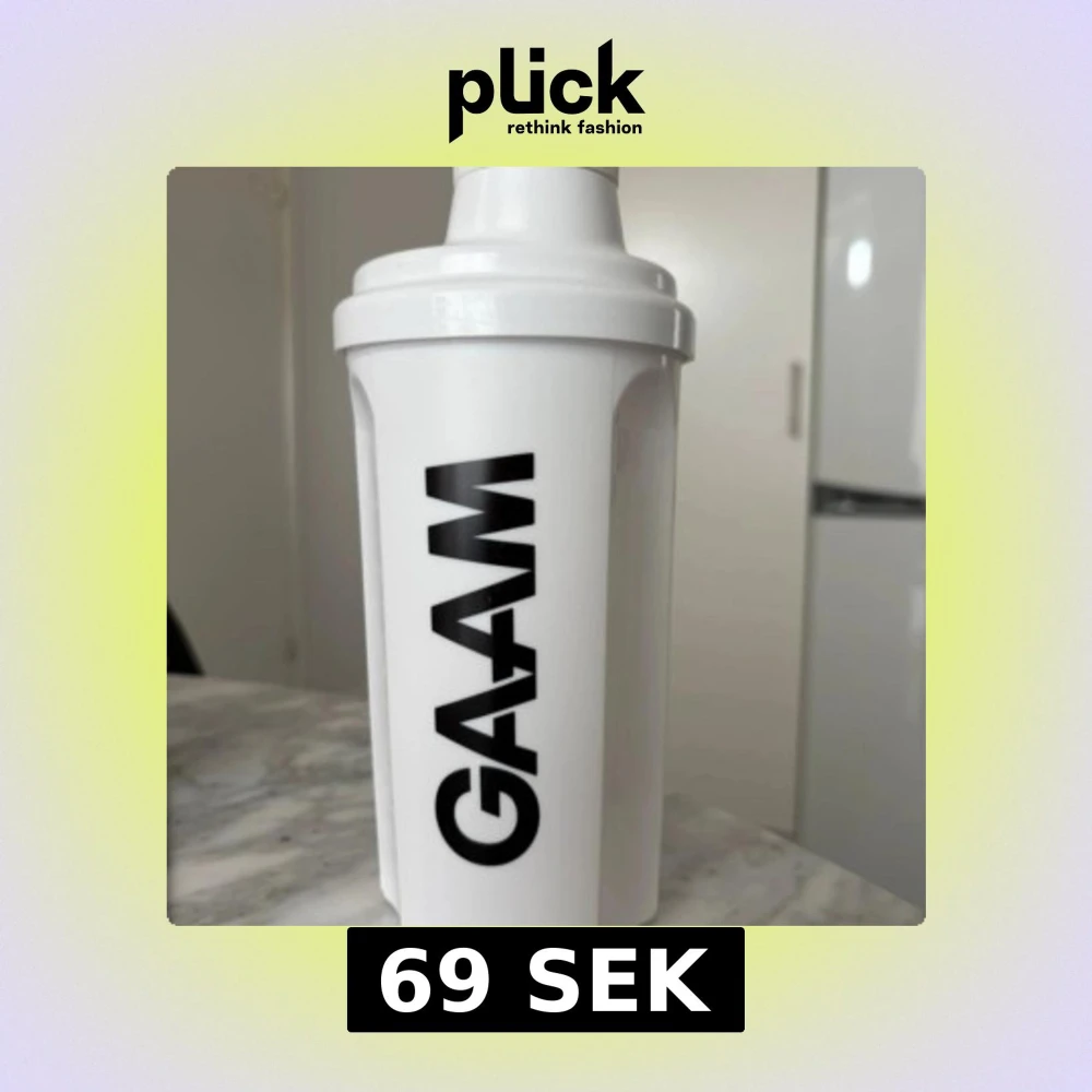 Säljer en vit shaker från GAAM med svart logotyp. Shakern har ett avtagbart lock och en insats med bikakemönster för effektiv blandning. Perfekt för proteinshakes och andra drycker. Enkel att rengöra och praktisk att använda både hemma och på gymmet. Aldrig använd!