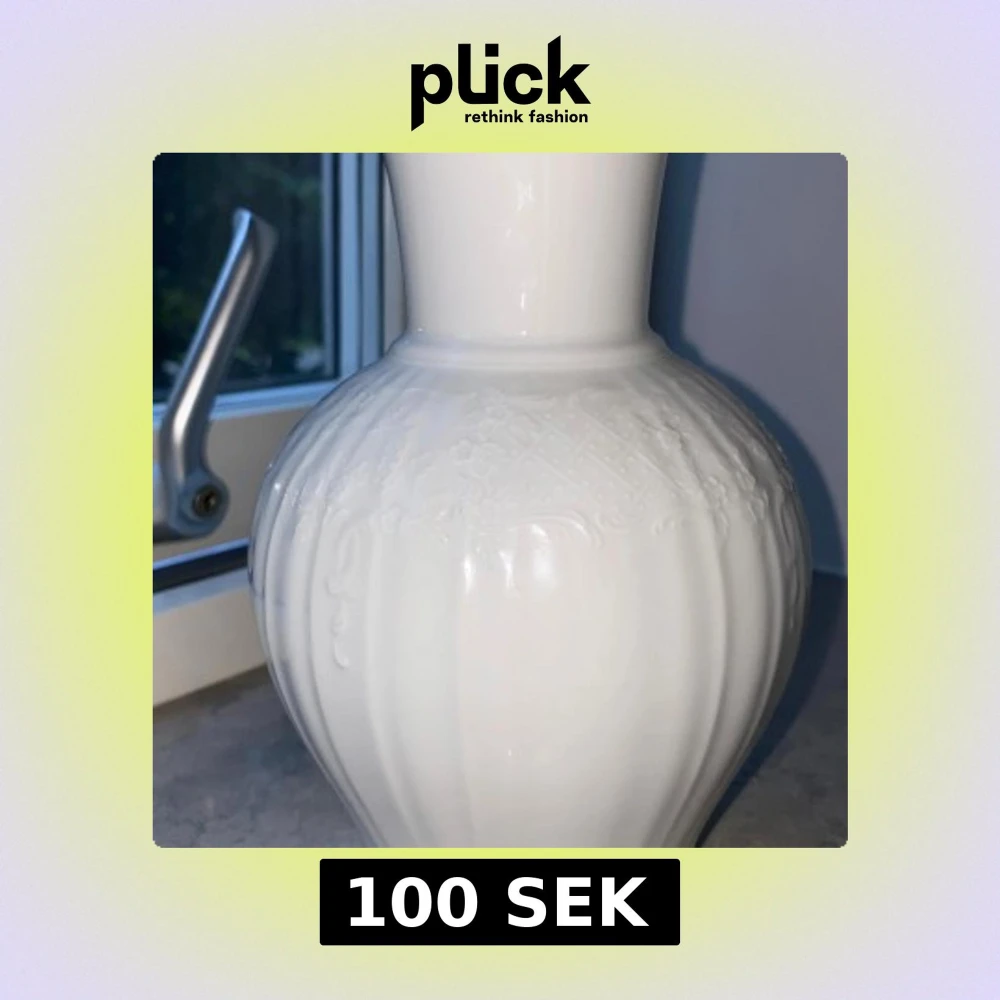 Vit vas đș med fina ritningar pĂ„, blommor och annat som ser spĂ€nnande ut. Har köpt den lĂ€nge sedan frĂ„n en butik, som ni ser pĂ„ bilden sĂ„ har den absolut inga skada. Om ni tittar noga sĂ„ finns det lite flĂ€ckar inne i vasen som jag försökte fĂ„ bort men gick inte. Annars ser allt annat bra!