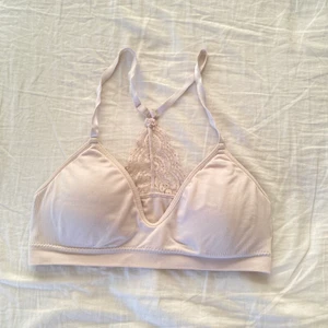 En vit bh, banden har blivit lite snurrig men märks inte när den sitter på. Är i bra skick. Lite grå i tonen.