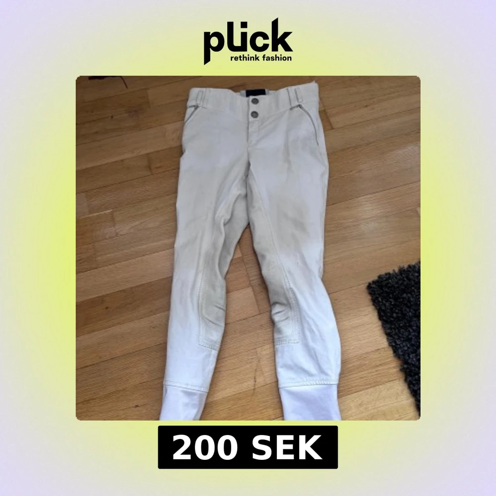 Säljer ett par vita ridbyxor från CRW. Byxorna har en klassisk design med knappar och dragkedja framtill. I storlek 150. Dom är lika mycket använda som kavajen jag säljer så 4 gånger ungefär. Och jag tvättar såklart allt innan jag skickar! Kan även tänka mig att köpa ridbyxorna och kavajen tillsammans, vid intresse för det kan ni skriv så diskuterar vi pris m.m. Helskodda