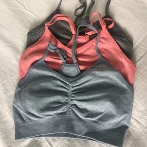 3 helt lika sport bh. I färgen rosa, blå och grå. Är inte använda nån gång bara testade. Det står att dem e i storlek M men dem passar bra för mig som är XS. Säljer för jag använder inte såna och fick dem från min kompis. 1 för 160kr. Priset kan diskuteras ❤️