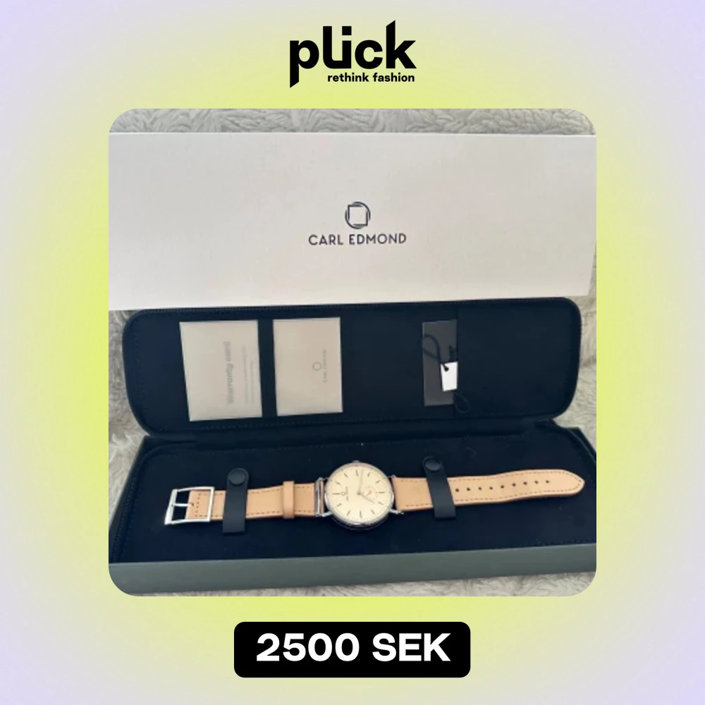 Carl Edmond klocka med schweiziskt Ronda Quartz urverk & 40 mm beige sandblästrad galvaniserad urtavla & natur läder band i beige & glas i safirkristal & endast 7 mm tjock.