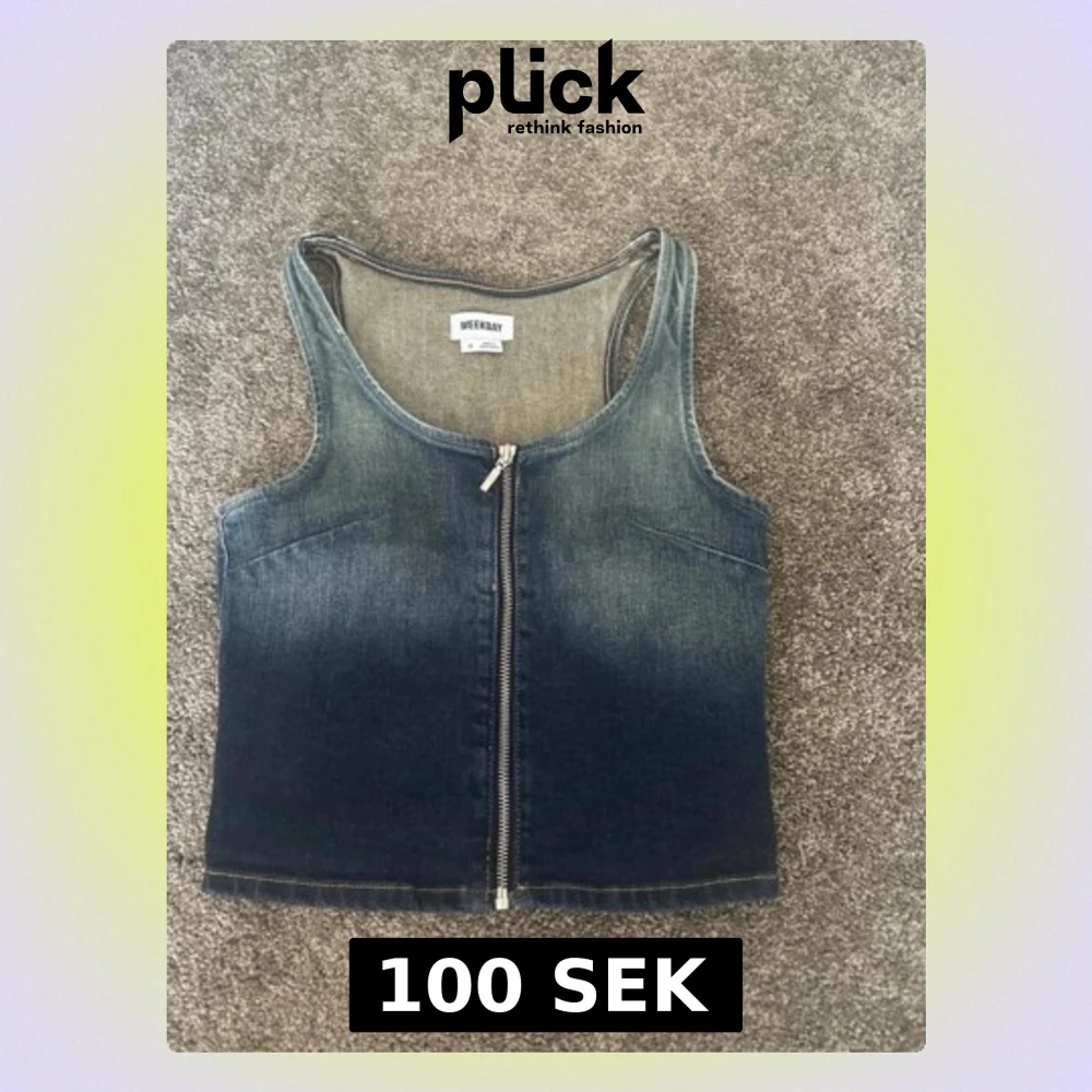 Säljer en snygg jeansväst från Weekday i klassisk blå denim. Västen har en rak passform, breda axelband och en rejäl dragkedja framtill. Perfekt att styla över en t-shirt eller tröja för en cool look.