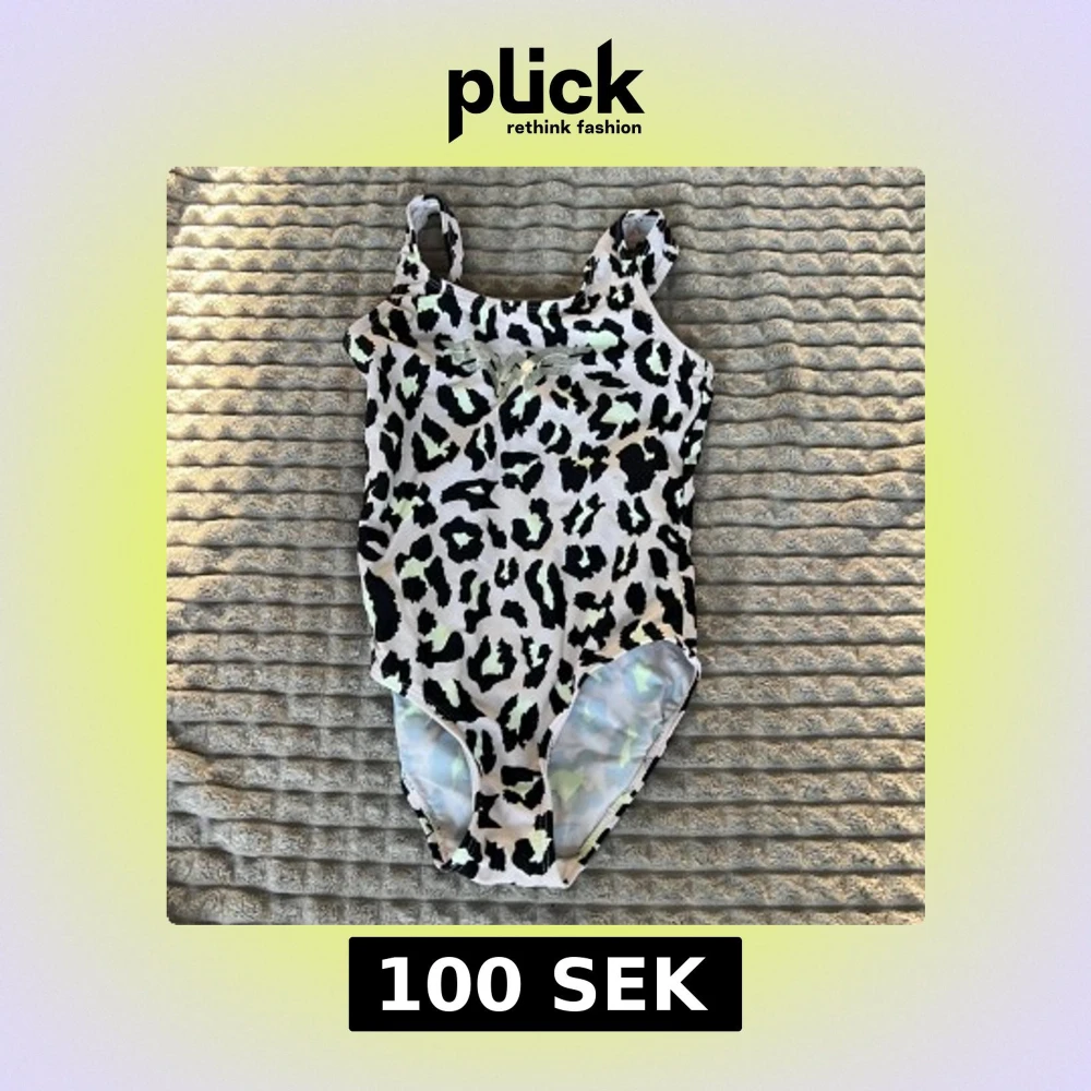 Snygg leopardmönstrad baddräkt med smala axelband och en liten rosett framtill. Perfekt för en dag på stranden eller vid poolen. 🐆