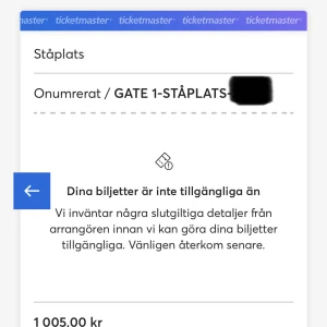 Jag säljer mina biljetter till Beyonce den 10 maj då min kompis inte kunde gå. Det är ståplatser. Säljer för ordinarie pris