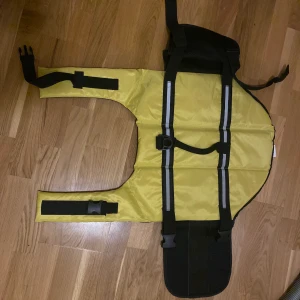 Helt ny gul hundflytväst från shein. På shein så stog det bara att den var xl och ej vikt mått. Så jag köpte den då jag vet att sheins djur storlekar kan vara lite fjantiga. Men den var för stor på min hund. Han är en mindre mellan pudel på ca 8 kg.
