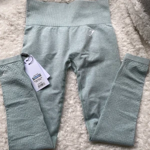 Gymshark Vital i XS. Färgen heter Washed Jade Marl och finns inte få tag på länge. Oanvända Blev mörkare på mina bilder så lånade bild för true färg - mintgröna Godtar ej prutande är priset som gäller