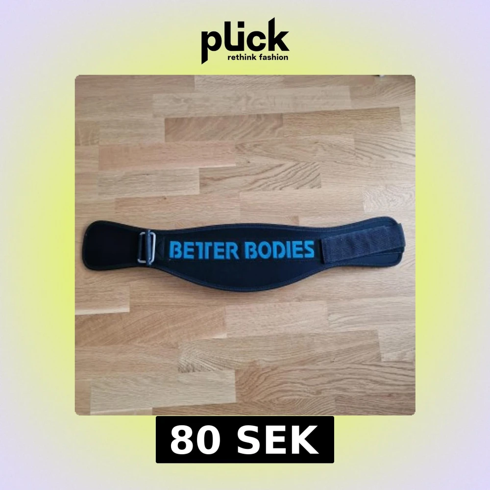 Säljer ett svart träningsbälte från Better Bodies i storlek XS. Bältet har en bred, ergonomisk form och är tillverkat av neopren och polyester. Det har ett stort blått Better Bodies-tryck och justerbart kardborreband för smidig passform.