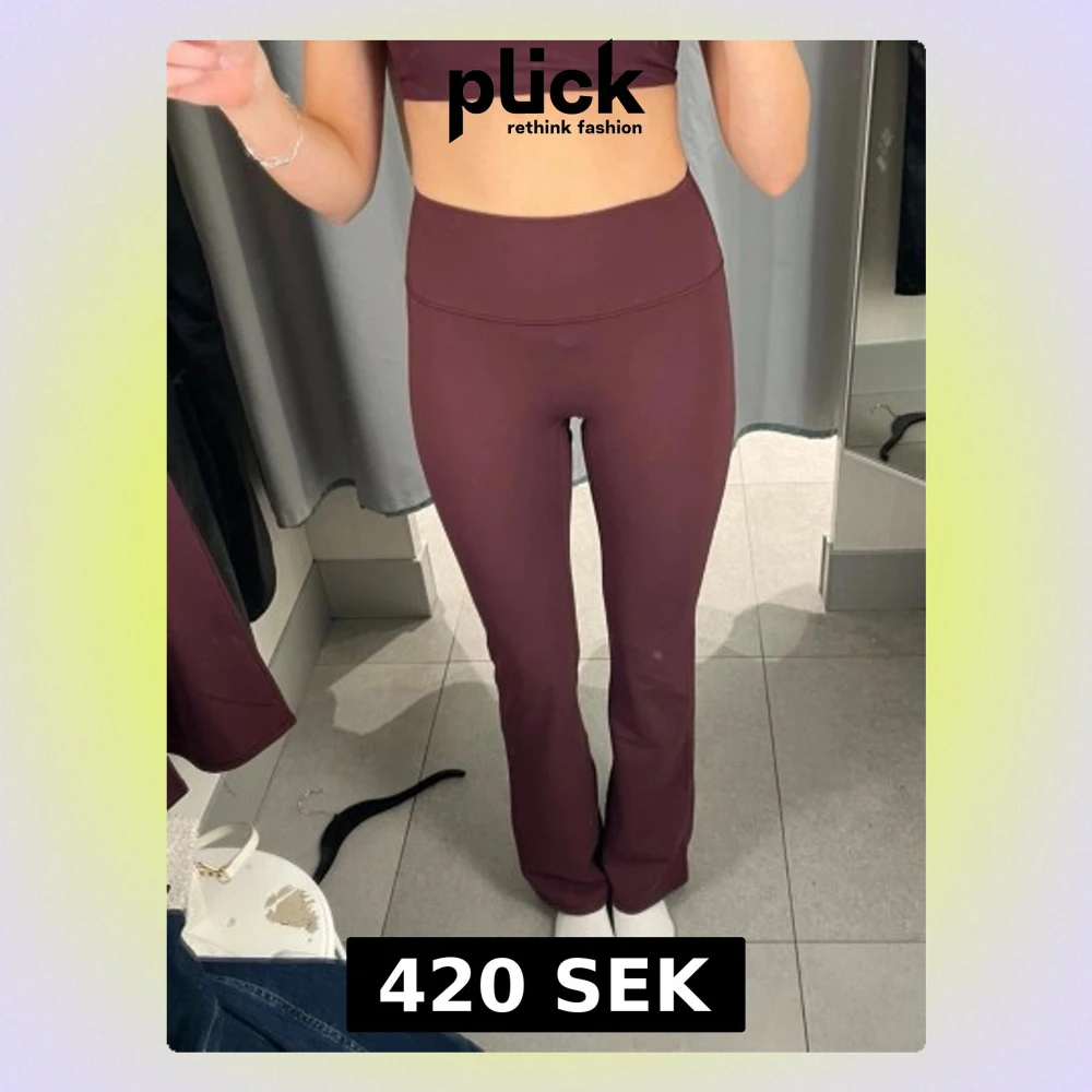 Säljer ett par vinröda bootcut träningsbyxor från H&M Move i storlek XS. Byxorna har hög midja och är gjorda i mjukt, stretchigt syntetmaterial som sitter skönt mot kroppen. Perfekta för gymmet eller yoga och har en stilren look utan mönster.helt slutsålda på hemsidan och använda 2 gånger så väldigt bra skick💕