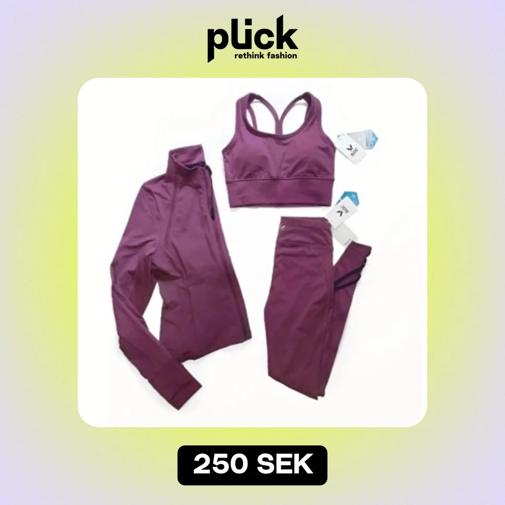 Färg: Plommon/MörkLila. Strl: XS (alla 3 st delar) Helt nytt tränings-sett från Soc. Träningsjacka, Sport-bh och tillhörande leggings. OBS. Aldrig använt, tags kvar på plaggen! (Nypris ca 800 kr)