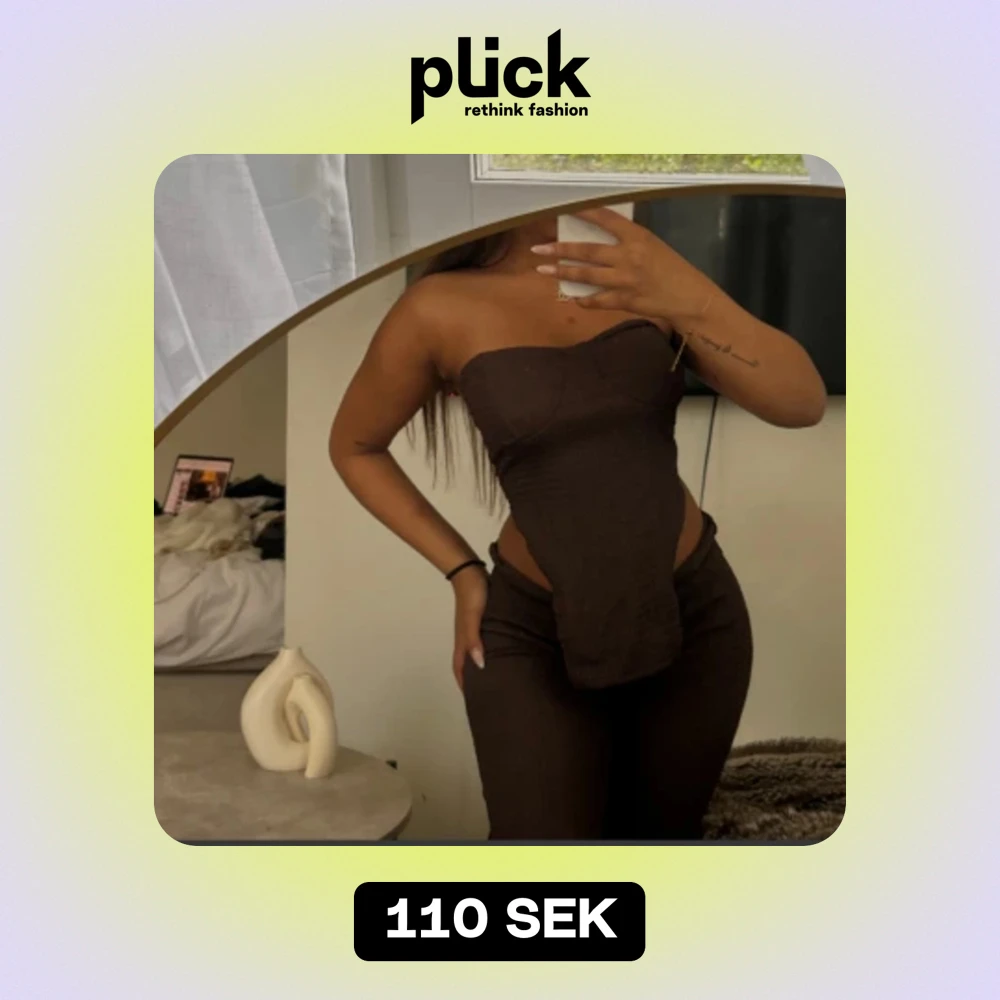 ett två delat set , byxorna är flare (utsvängda) och tröjan är utan ärmar. använd fåtal gånger! 🤎