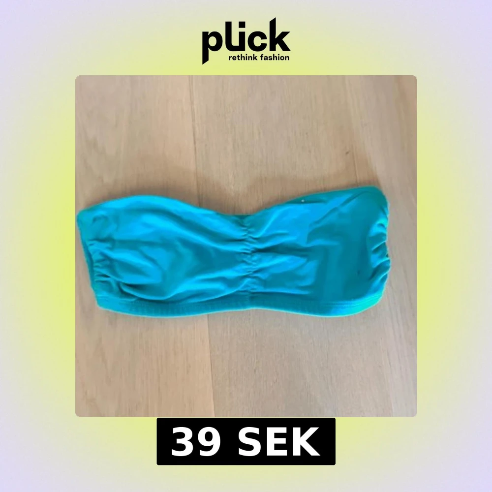 Säljer en turkos bandeau med rynkade detaljer framtill. Enkel och stilren modell utan axelband, perfekt för soliga dagar på stranden eller som bh.