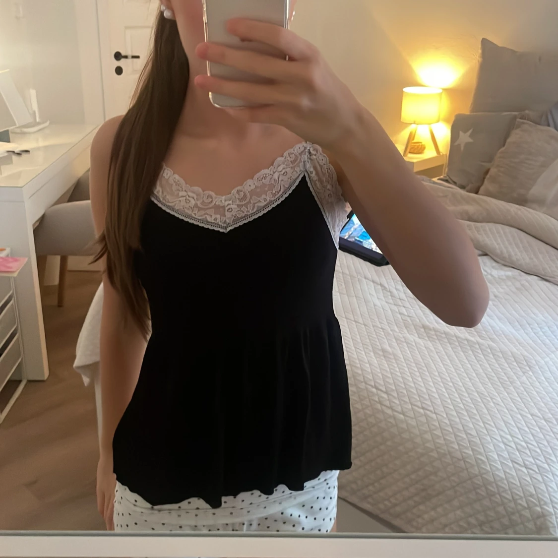 Svart nattlinne med vit spets