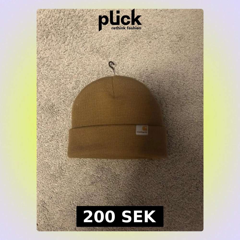 Helt ny och aldrig använd snygg brun mössa från Carhartt med klassisk uppvik och logotyp framtill. Perfekt för dig som vill ha en enkel och stilren look. Tillverkad i mjukt stickat material som håller dig varm under kyliga dagar.