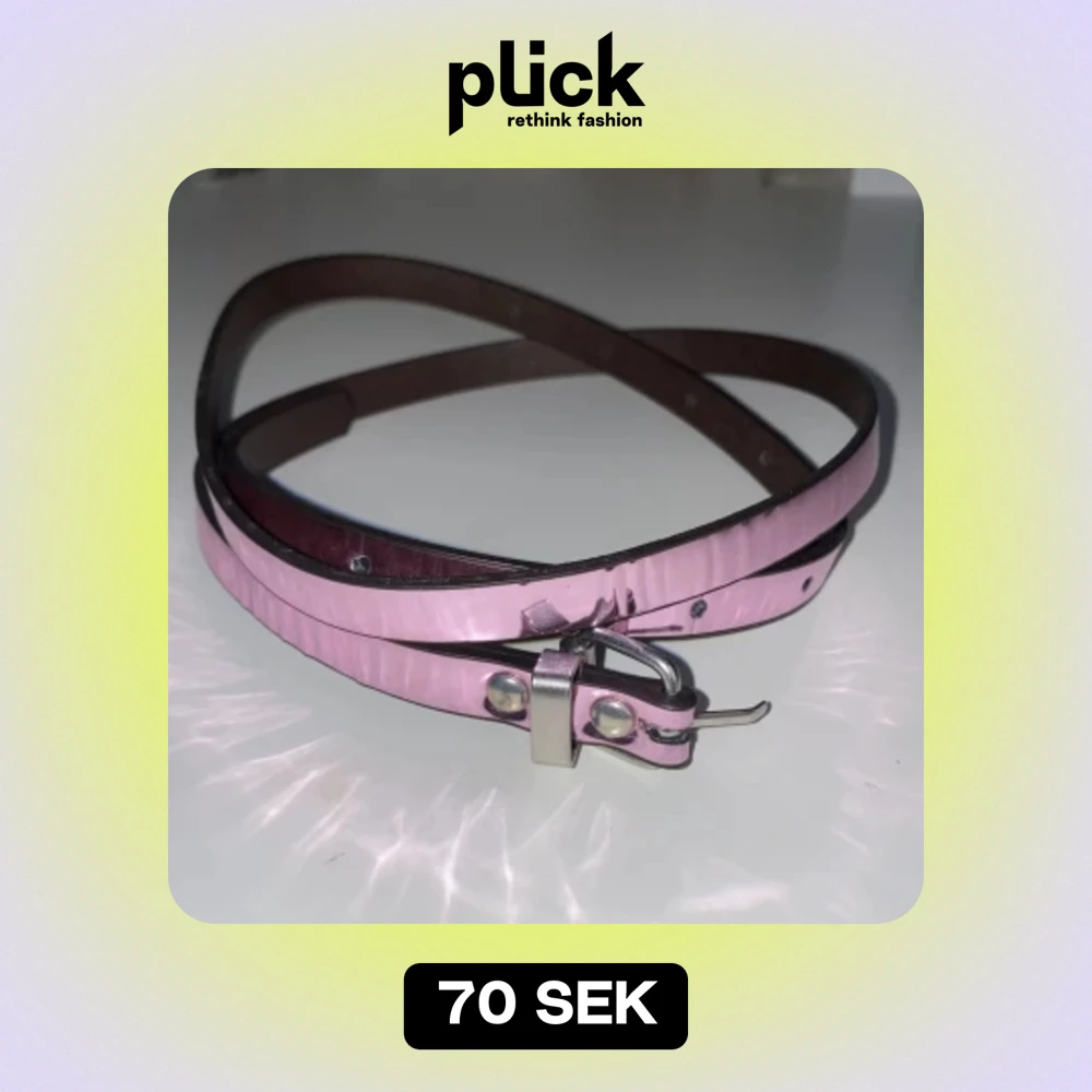 Säljer ett smalt rosa bälte i skinn med en silverfärgad spänne. Bältet är i nyskick och har en glansig yta som ger en snygg touch till vilken outfit som helst. Perfekt för att piffa upp dina jeans eller klänningar!