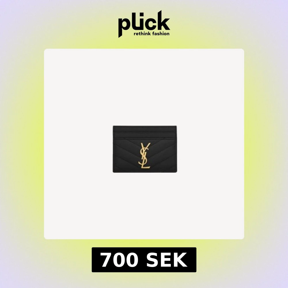 Supersnygg svart kortplånbok från YSL med guldigt logodetalj framtill. Plånboken är quiltad i ett stilrent mönster och har flera fack för kort. Tillverkad i skinn och perfekt för dig som vill ha en lyxig och smidig accessoar. Helt oanvänd, pris kan diskuteras vid snabb affär