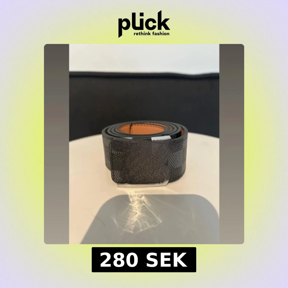 Snyggt svart bälte med rutigt mönster och stilrent silverfärgat spänne. Insidan är ljusbrun och bältet är gjort i skinn med en exklusiv känsla. Perfekt accessoar för att lyfta din outfit med en modern touch. 105 cm långt skriv om du vill ha bättre bilder!