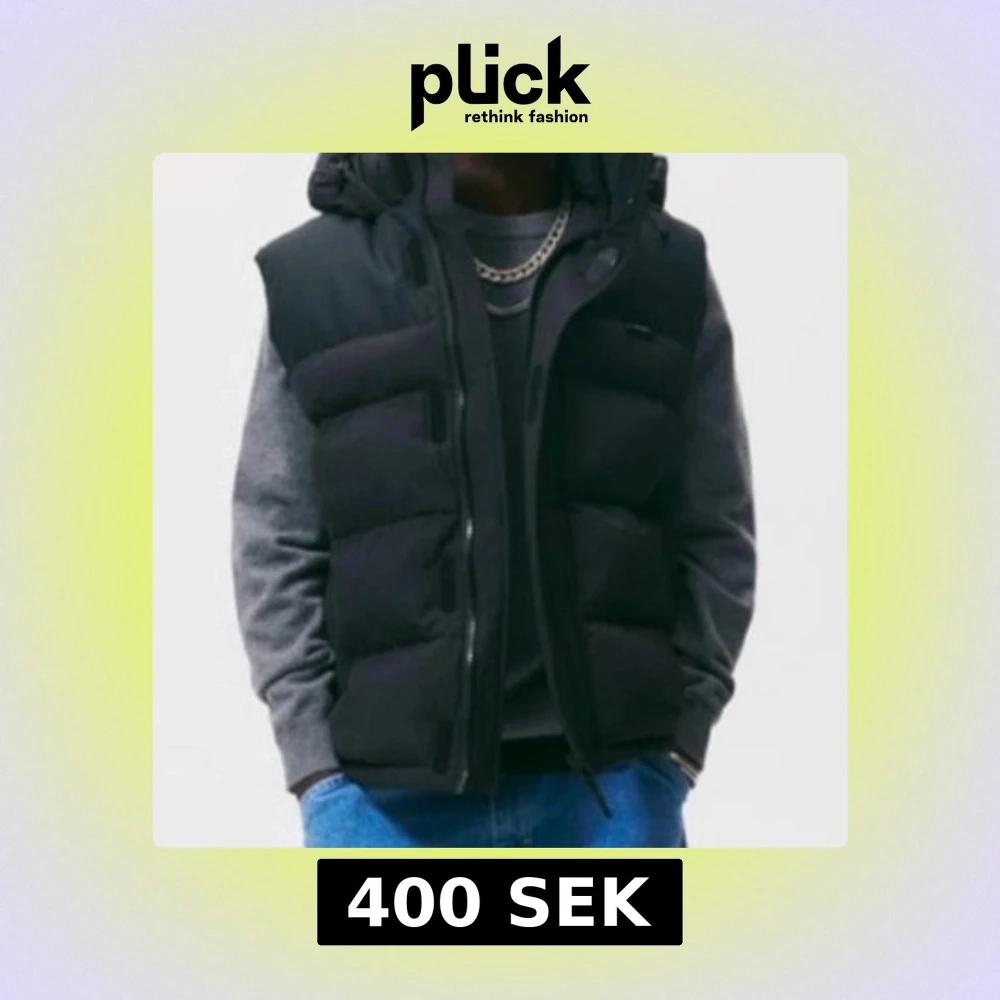 Snygg svart dunväst med huva och dragkedja framtill. Västen har en puffig, quiltad design och är perfekt att bära över en hoodie eller tröja. Passar till många olika stilar och håller dig varm under kyliga dagar.priset kan diskuteras vid snabb affär.