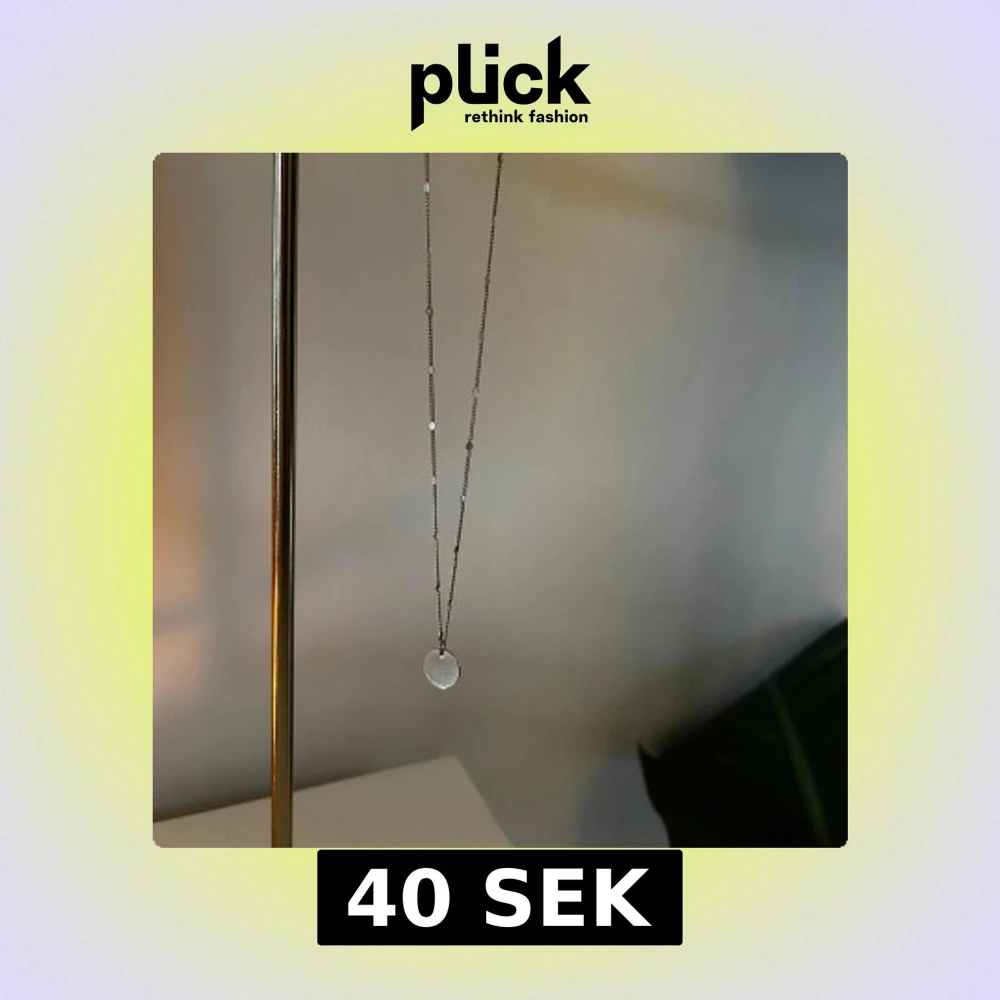 Stilrent halsband i silverfärg med tunn kedja och små dekorativa detaljer längs länken. Hängsmycket är en rund, platt berlock som ger en minimalistisk och modern känsla. 🌟
