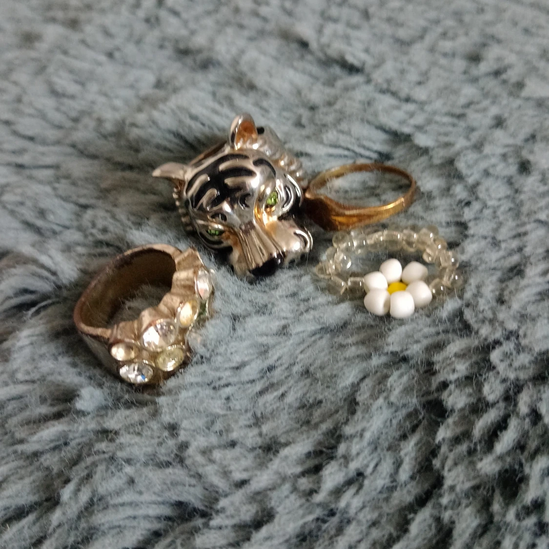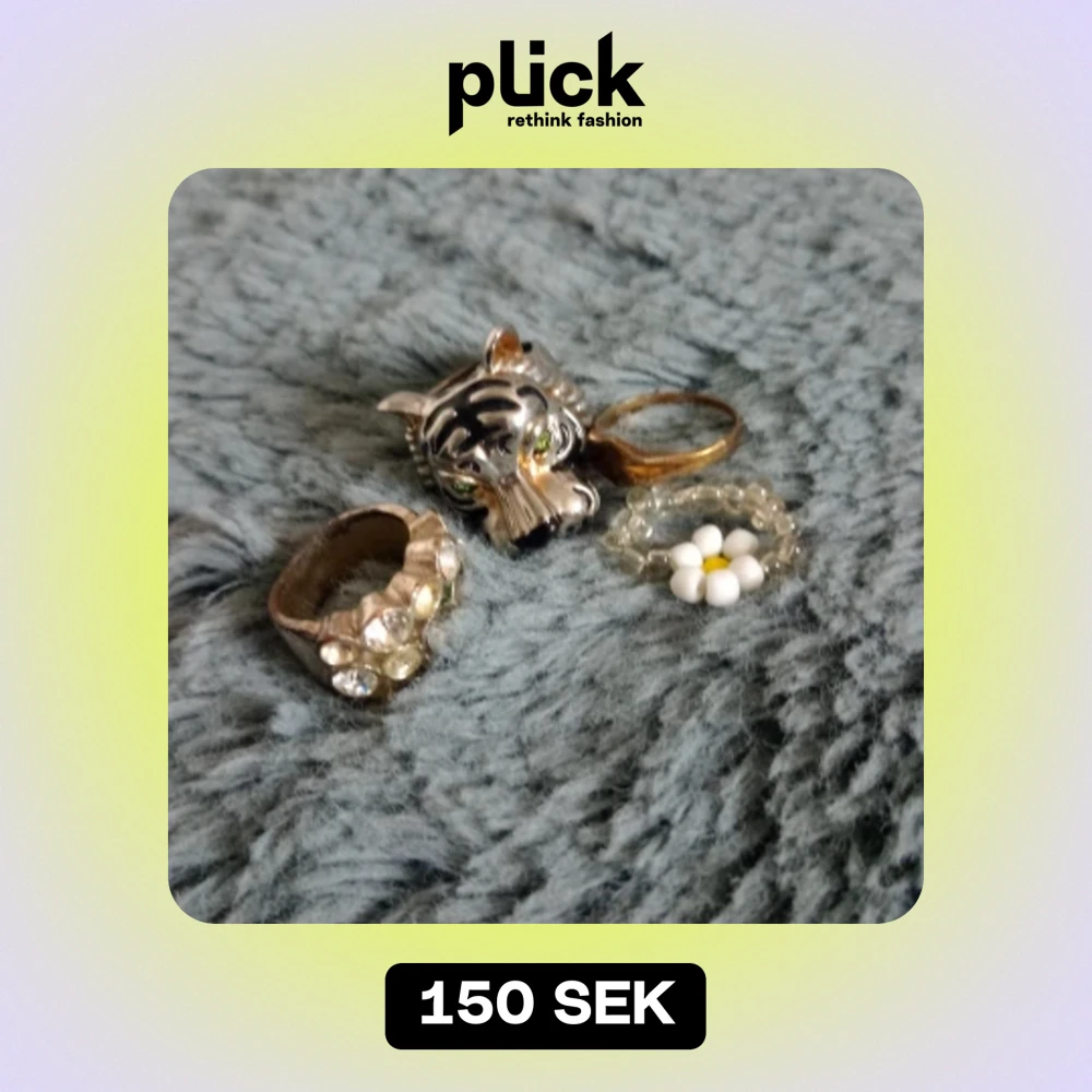 Olika ringar i mittal och pärlor