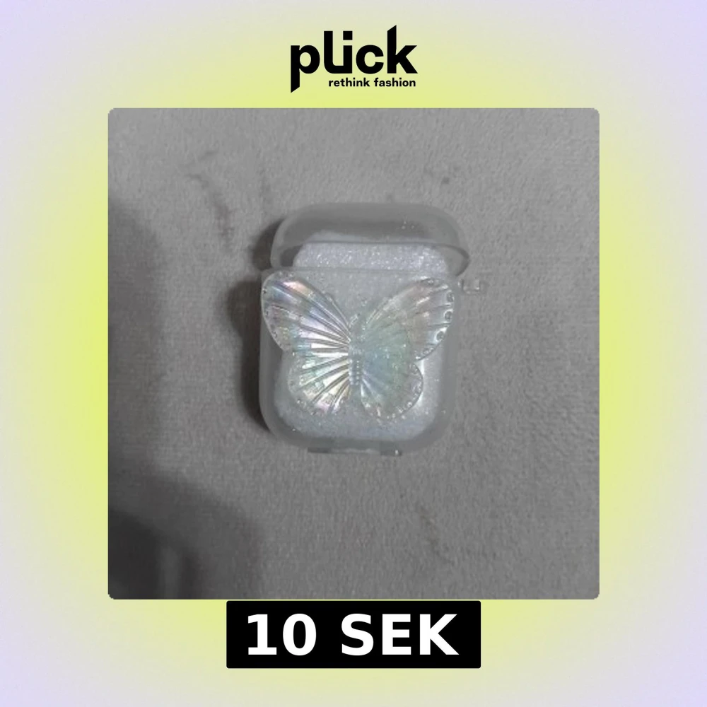 Stilrent transparent skal till AirPods 1/2 med dekorativ fjäril. Ger bra skydd mot repor och stötar. Skalet är i nyskick utan synligt slitage. Perfekt för dig som vill ge dina AirPods ett unikt och personligt utseende. Jag säljer den för att jag råkade köpa för liten