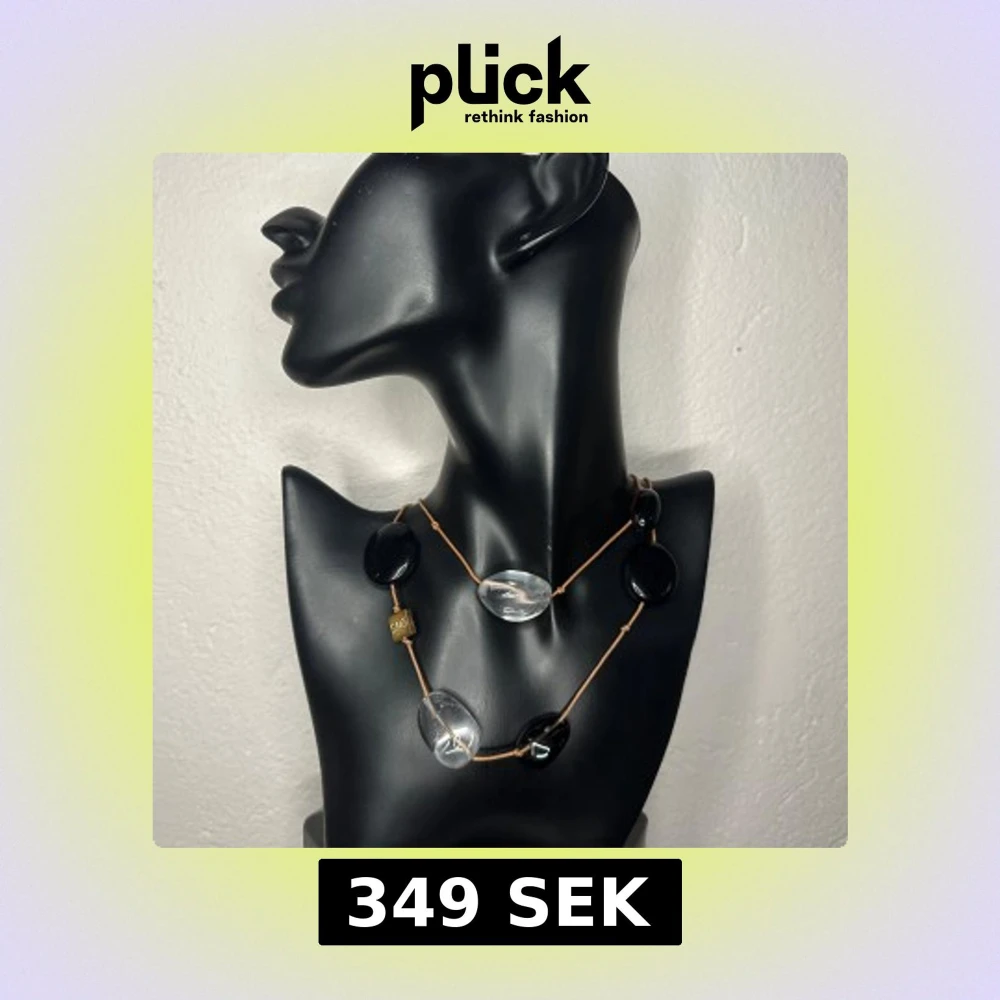 Elegant halsband från Snö of Sweden med stenar i bergkristall, svart onyx och rökfärgad kvarts. Trätt på naturfärgat läder med metallspänne. Längd ca 100 cm, stenarna mäter ca 3x2 till 2,3x1,8 cm. Originalask och tag medföljer. 2000/2010-tal. Prutning accepteras inte, men jag erbjuder gärna rabatt vid köp av flera smycken. Jag rensar smyckesskrin och garderob – passa på att kika på mina andra annonser också!